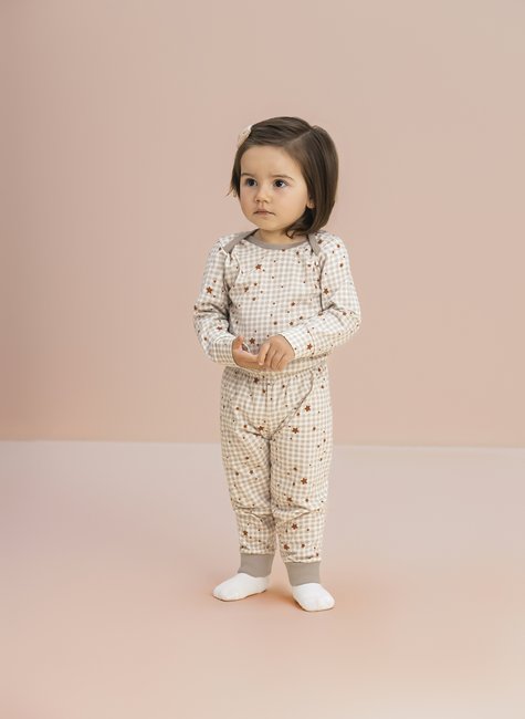 Perfeito para quem ama o estilo pijama tal mãe tal filha, esse conjunto permite criar combinações cheias de charme, mantendo o aconchego e a liberdade de movimentos que o bebê precisa.