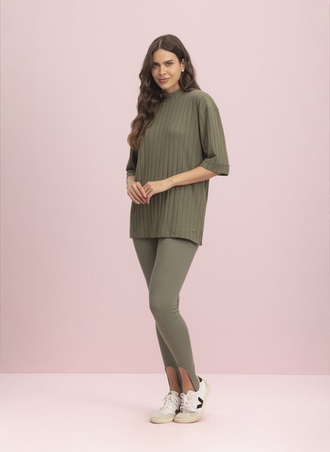 Conjunto feminino, legging em cotton com pezinho, super confortável, ajustada ao corpo, tecido macio e confortável. Nossa blusa confeccionada em uma modelagem masi ampla, gola alta e manga curta um pouco maior, em um tecido novidade para nós ( 80,5 algodão, 11% poliéster e 8,5 elastano).
