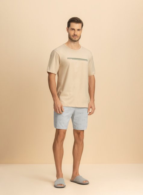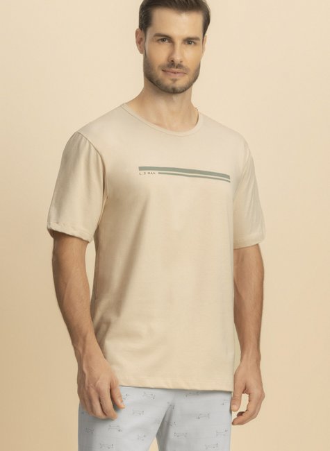 Conforto e estilo para noites leves e divertidas! A camiseta possui estampa exclusiva LE MAN, moderna e descontraída, enquanto a bermuda em tom azul claro, com a alegre estampa de cachorrinhos salsicha, traz um toque divertido sem abrir mão da praticidade.