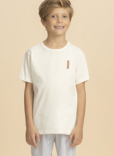 A camiseta branca traz a etiqueta termo exclusiva Lua Encantada, que adiciona charme de forma delicada e moderna. A bermuda azul clarinha com listras brancas, confeccionada em 100% algodão, oferece frescor, maciez e liberdade de movimento, ideal para acompanhar as aventuras do dia e o relaxar da noite.