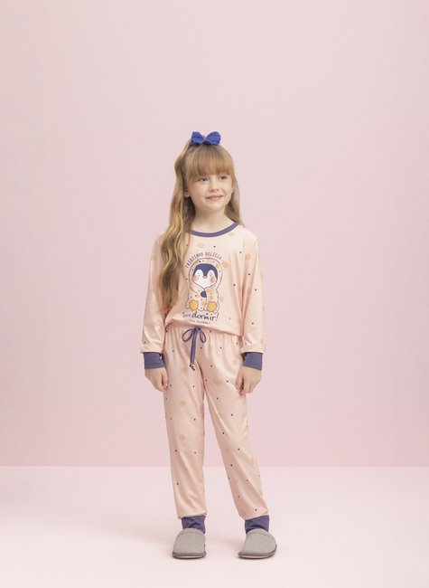 Envolva-se no conforto do nosso pijama short doll da família Pinguim, feito em 100% algodão. Com estampa de poá roxa e laranja sobre fundo clarinho, é perfeito para noites amenas. O elástico na cintura, falso amarrador, punhos nas mangas e barra garantem conforto e charme. O decote redondo com filete roxo e a fofura do pinguim estampado, acompanhado da doce mensagem "Friozinho delícia para dormir", tornam a peça ainda mais especial. A escolha perfeita para momentos de descanso cheios de estilo e aconchego.
