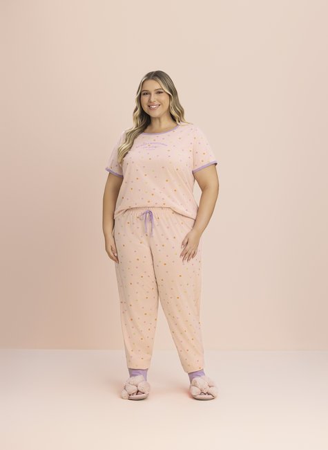 Ideal para quem procura pijama feminino plus size confortável, pijama feminino de algodão, pijama feminino manga curta com calça, pijama feminino para dormir, pijama feminino meia estação, pijama feminino grande, pijama feminino macio e roupa de dormir feminina confortável.