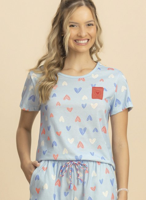 Com detalhes inspirados em passaporte, este short doll manga curta convida você a explorar o mundo dos sonhos com muito conforto e estilo. A estampa de corações sobre fundo azul transmite uma sensação de calma e leveza, perfeita para os momentos de descanso.