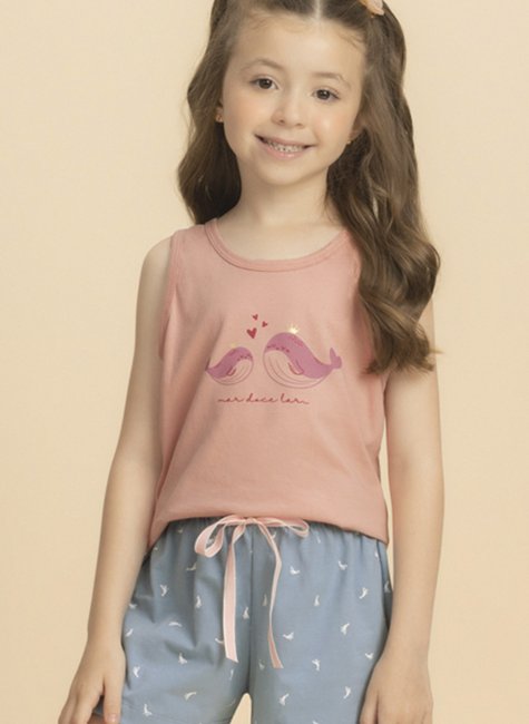 Short doll regata física da família Baleia, confeccionado em 100% algodão, com estampa de duas fofas baleias. Acompanha short azul com estampa de baleias e cordinha decorativa no cós da bermuda, proporcionando leveza, conforto e um toque de encanto inspirado no mar.